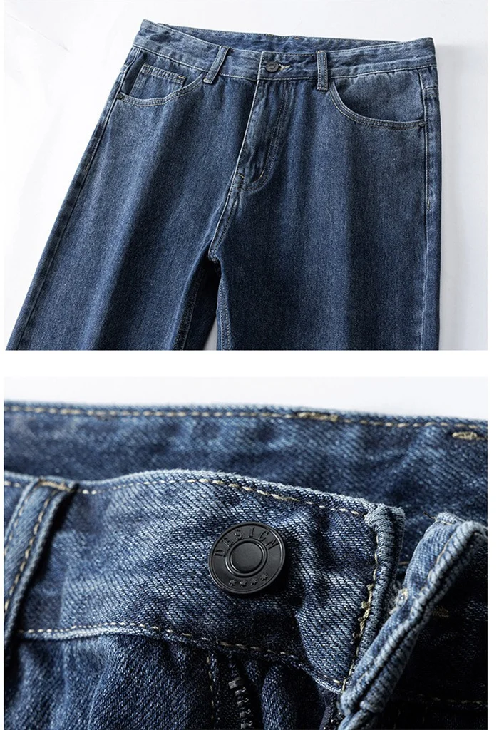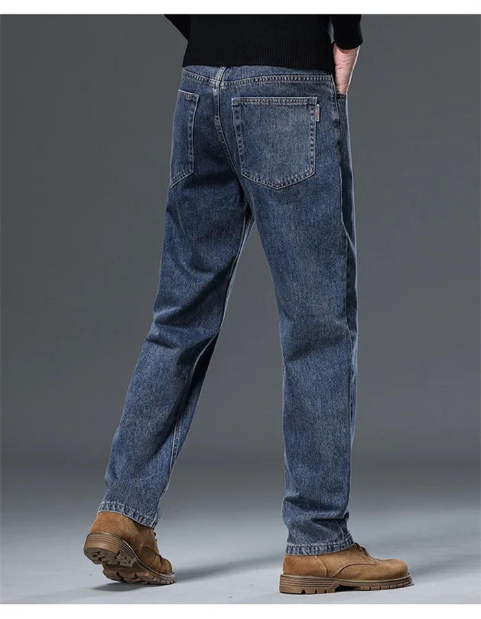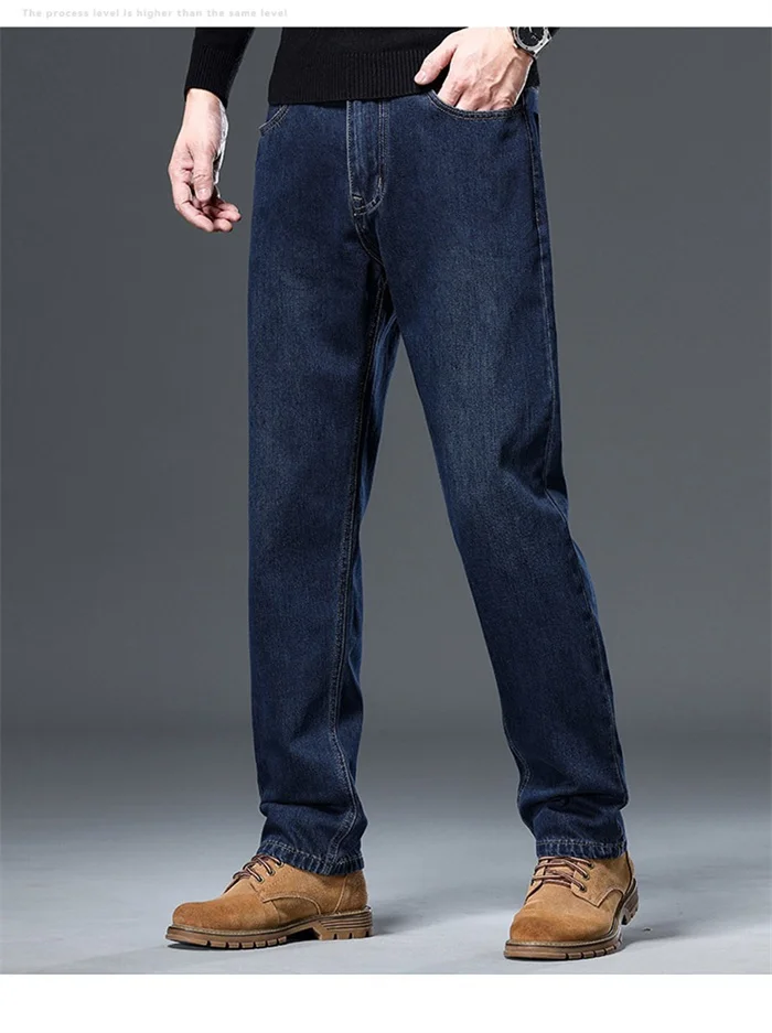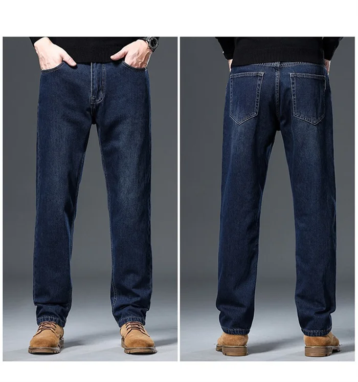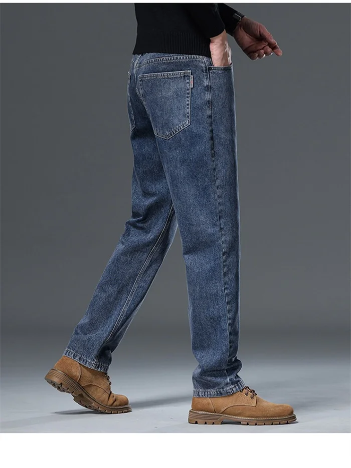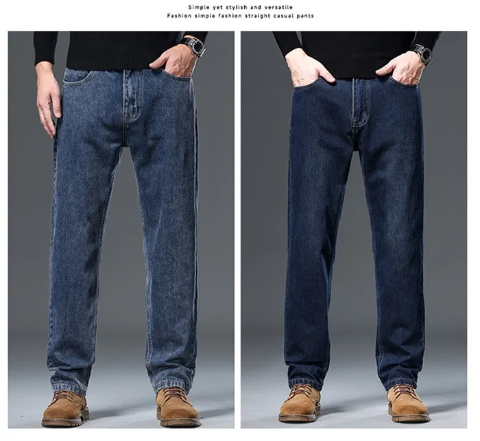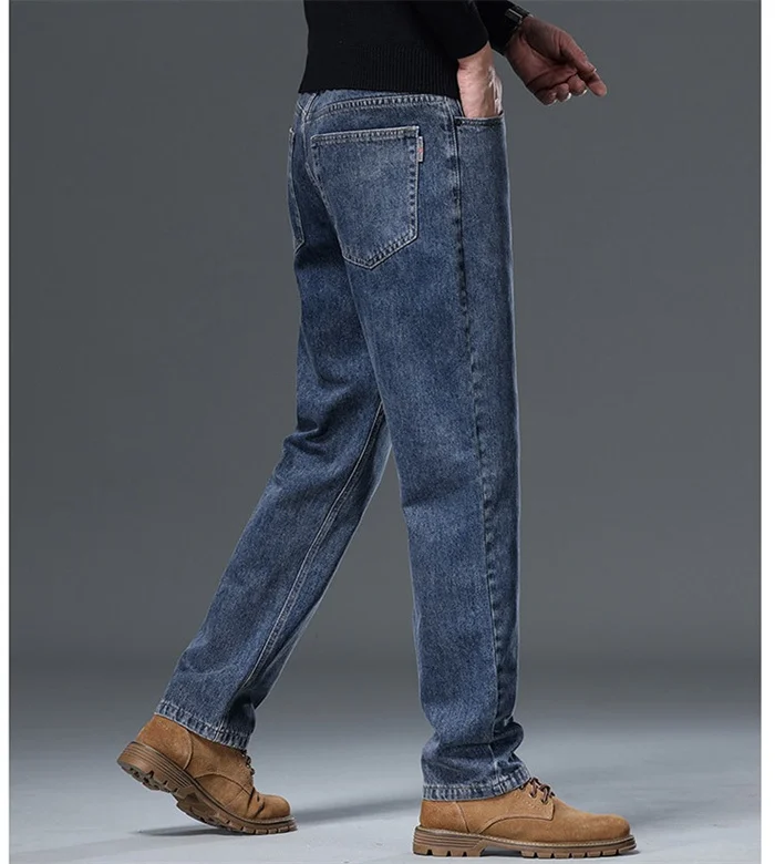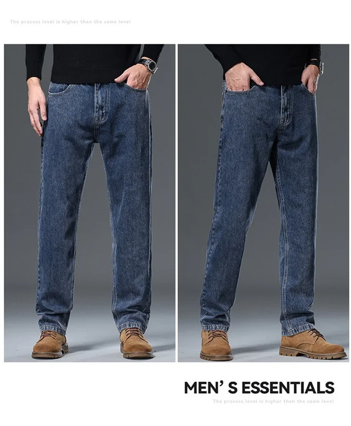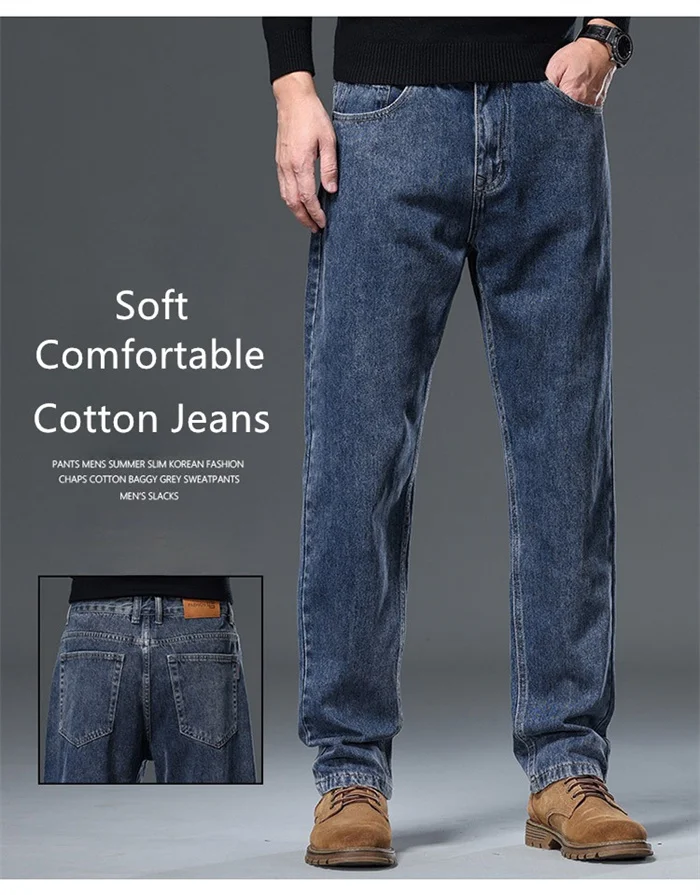 100% Pure Cotton Jeans Men Loose Trousers Classic Spring Autumn Casual Cowboy US Plus Size 38 40 42 Straight Male Denim Pants