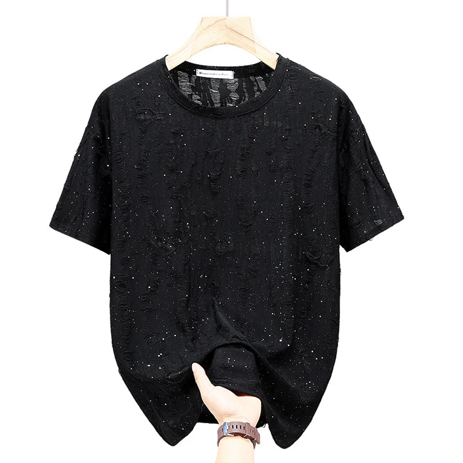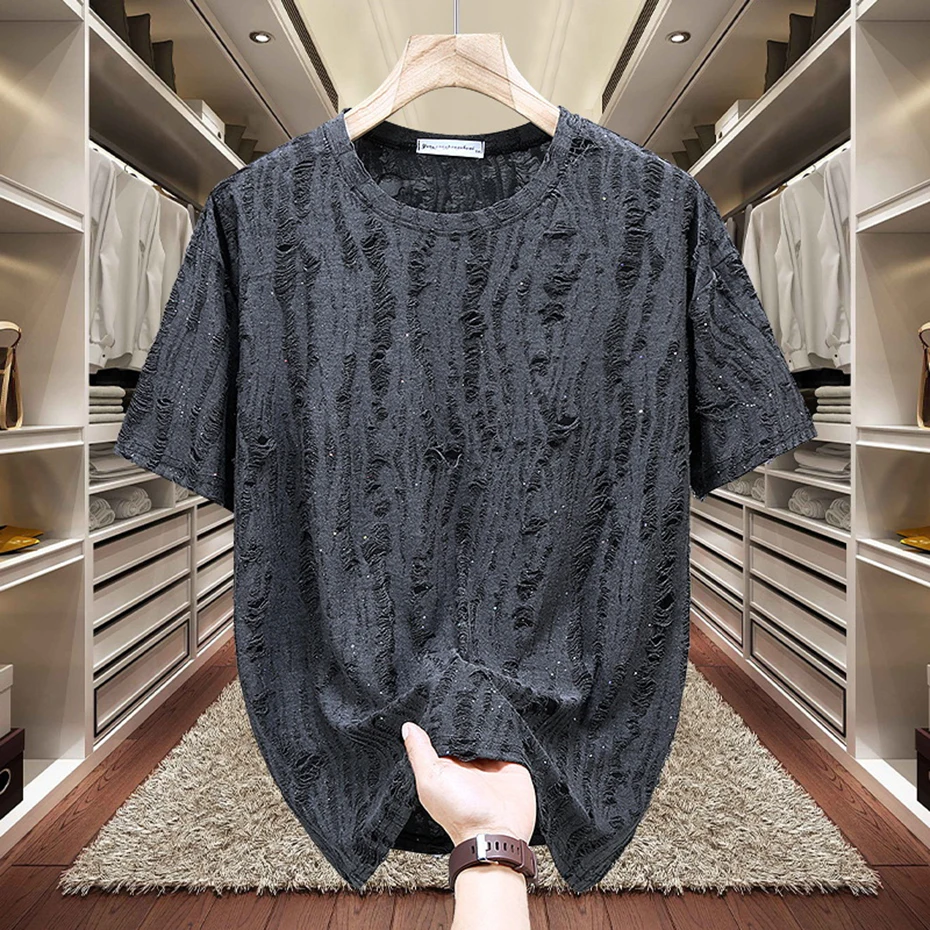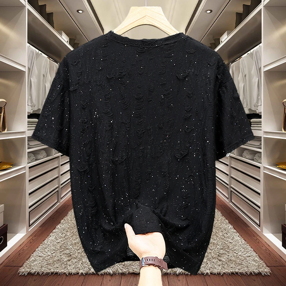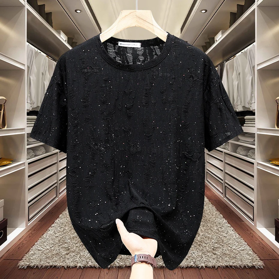 11XL Plus Size Men T-shirts Summer Fashion Rhinestone Tee Tops Black Gray Short Sleeve Crew Neck T Shirts Big Size 10XL 9XL