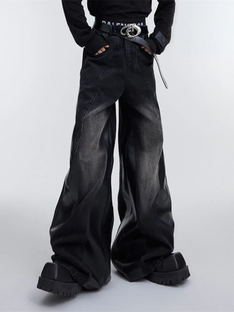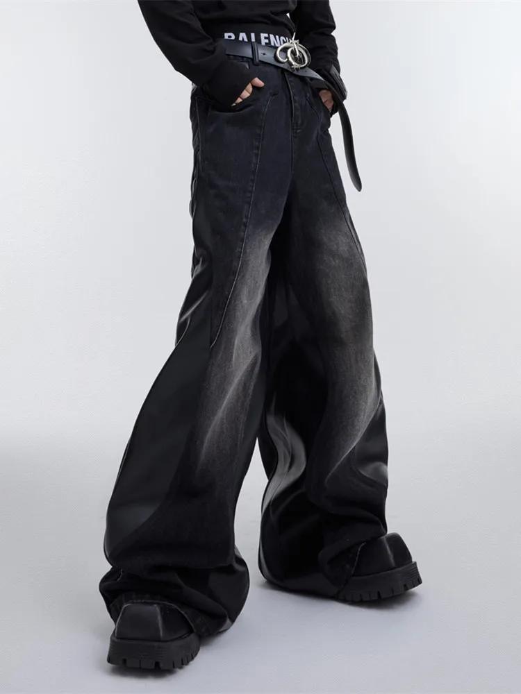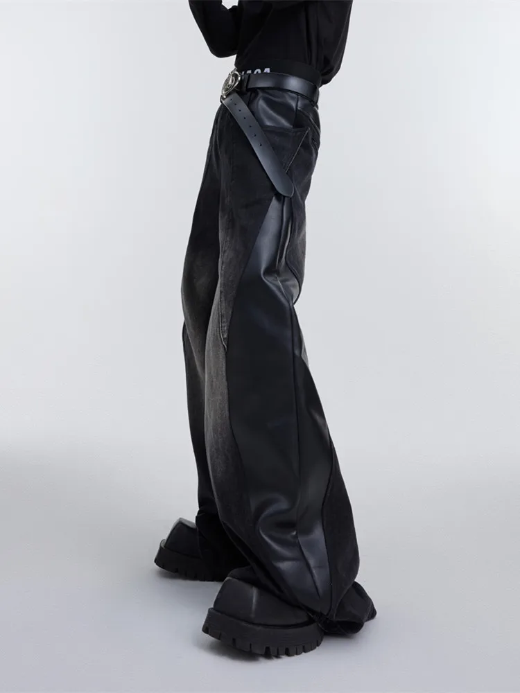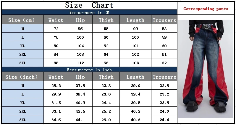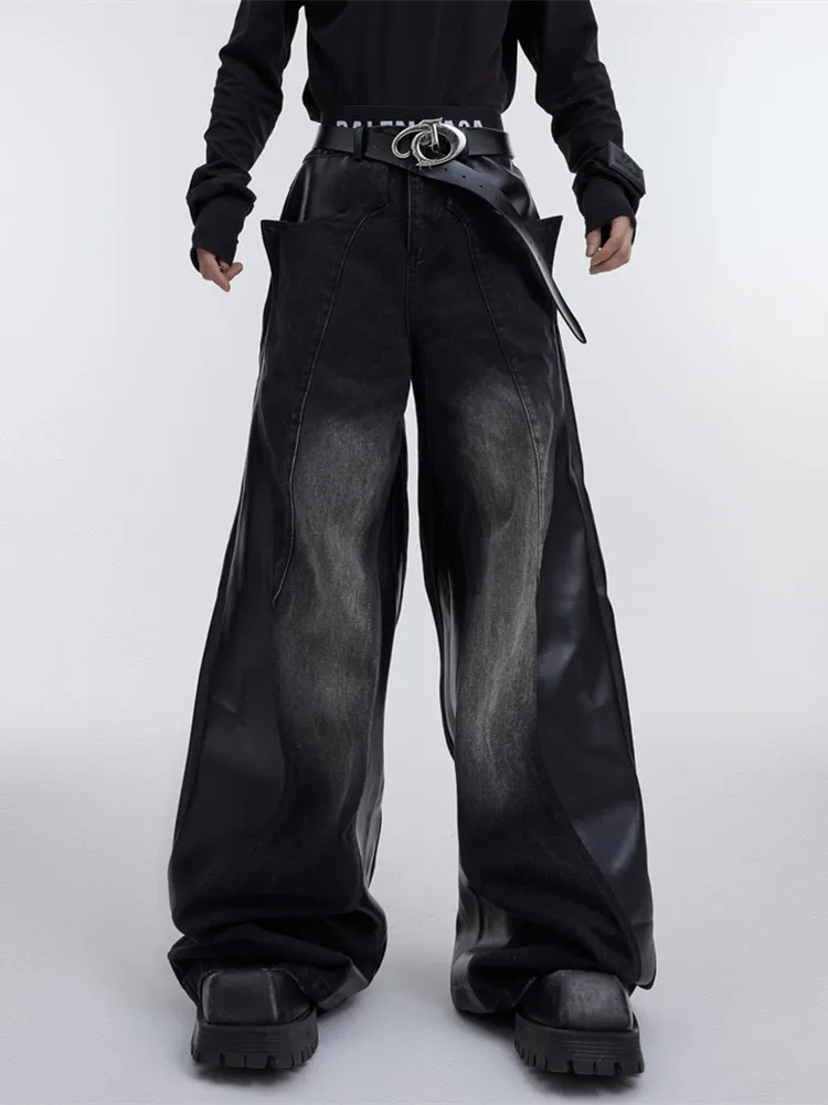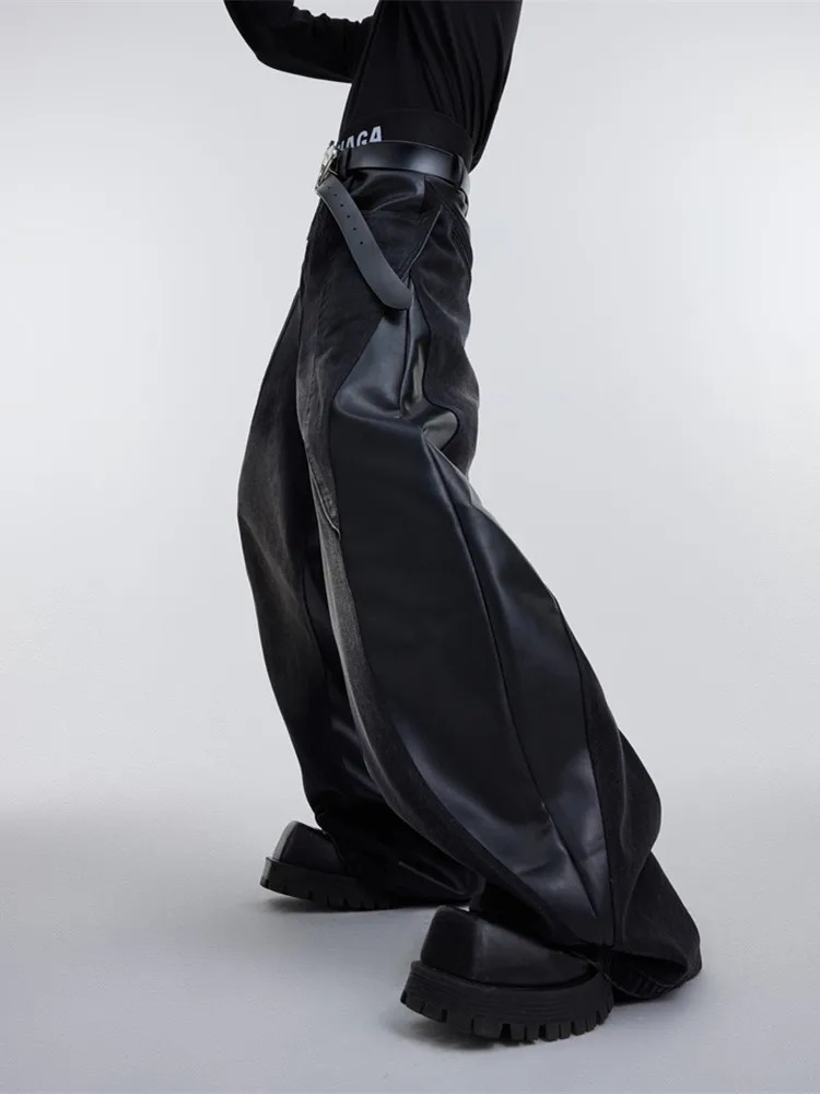 2024 Ropa Y2K Streetwear Red Pu Leather Patchwork Baggy Jeans Pants For Men Designer Clothes Kanye Wide Leg Loose Denim Trousers