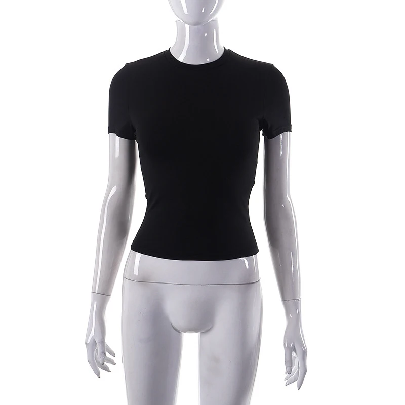2024 Spring New Short Sleeve T-Shirt Women Solid Simple Casual Soft All-Match Hot Basic Crop Tops Tees Summer Fashion